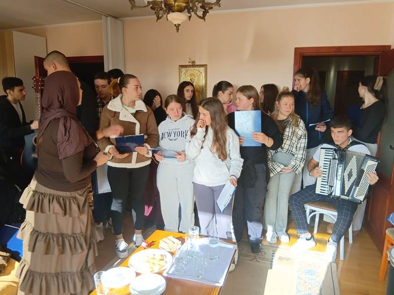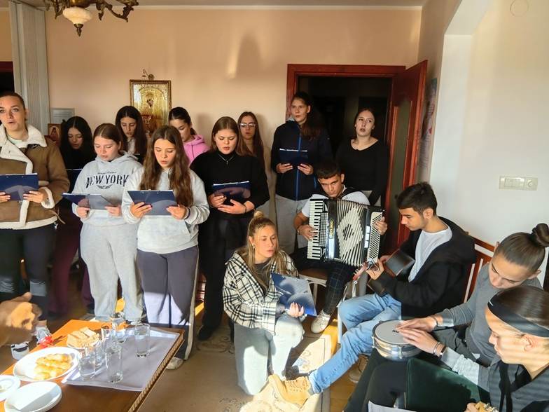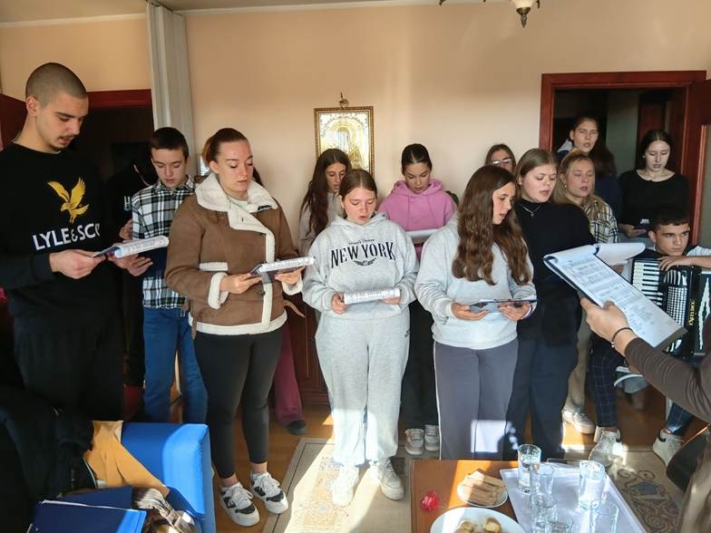 Двадесетак ученика који су чланови хора Свети Сава одлазе у посету Дому за маме да песмом и музиком разгале срца нашим пријатељима из ове установе.